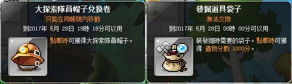 2.使用每天登入時配發的遺物探測道具(發掘道具袋子、大探索隊員帽子兌換卷)。