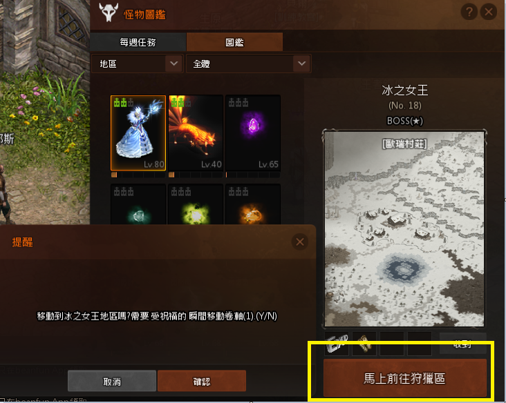 點選【馬上前往狩獵區】,就可以前往怪物所在的地圖囉!