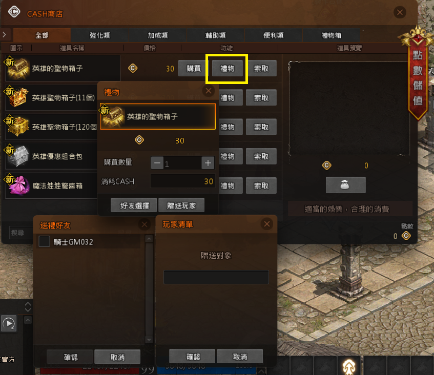 一旦選擇[確認支付]後,系統會立即扣除點數,並發送道具至對方的商城保管箱內,