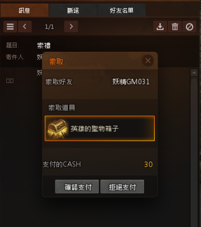 被索取的好友,可以透過MENU>信紙內確認到相關訊息